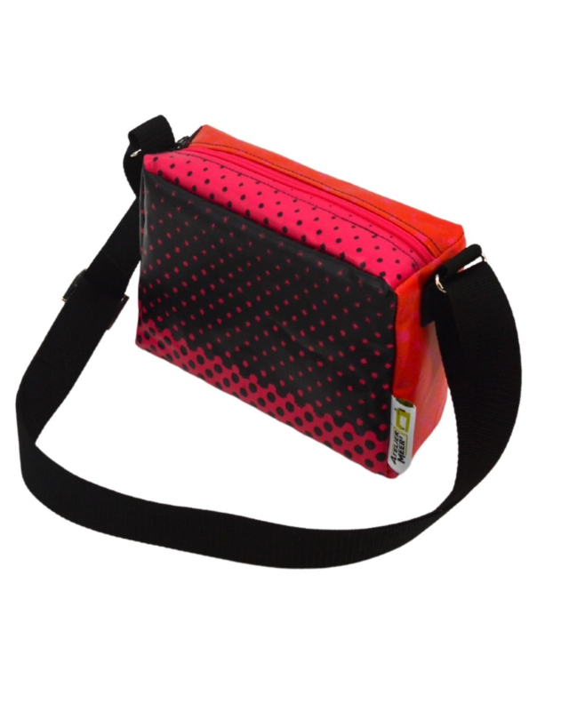- Met rits sluiting en binnenvakje en verstelbare schouderband